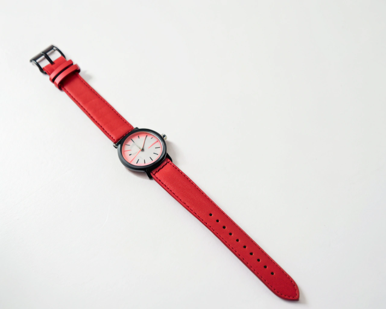 1. 文字盤やベルトが落ち着いた赤色のものを選ぶ