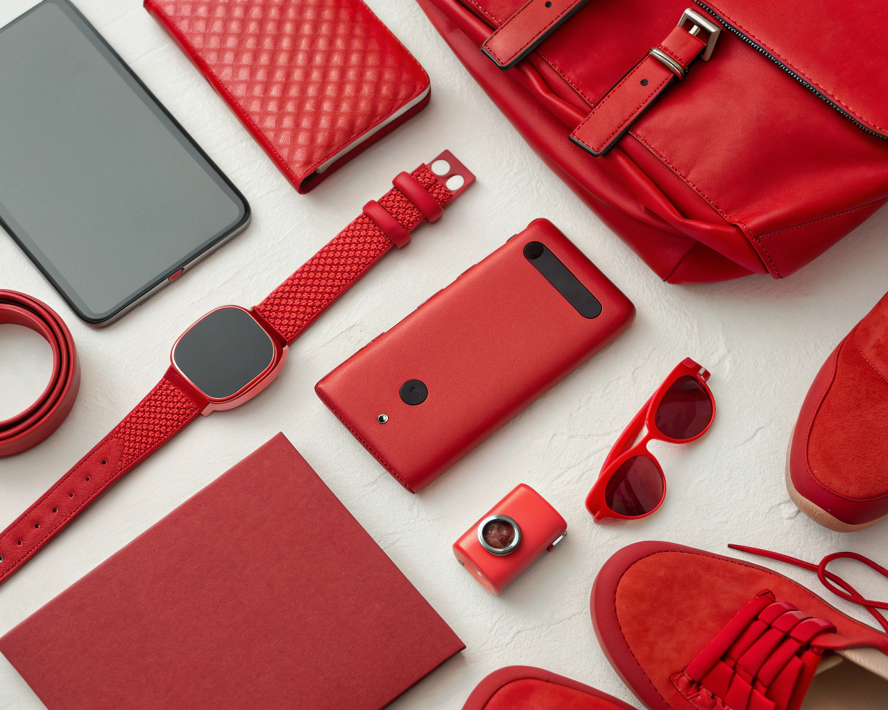 ・赤色のトーン(明るめ・暗め)や質感(光沢・マット)を比較する