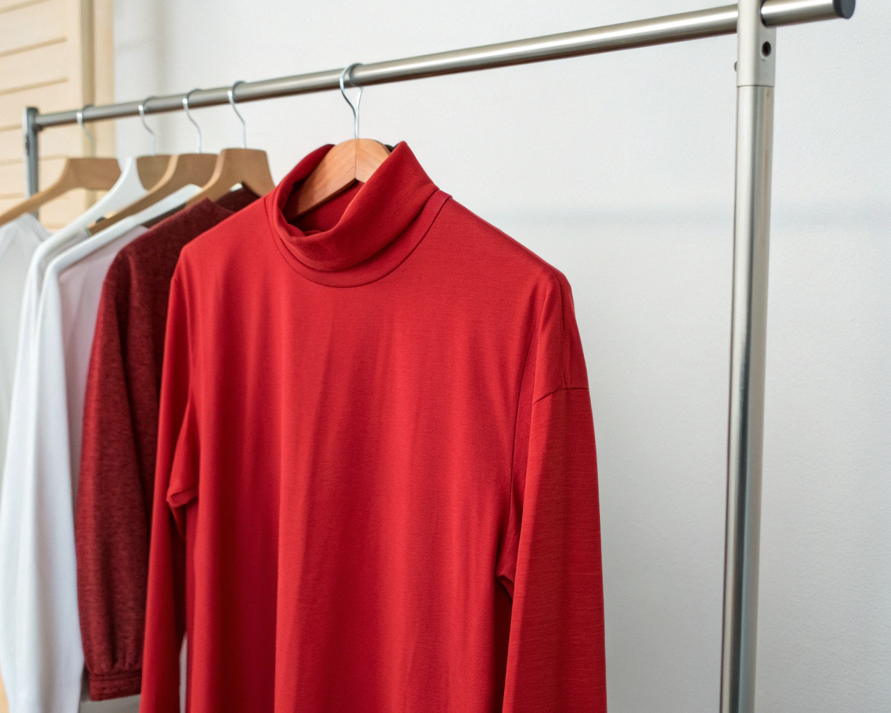 赤色 モックネックは、季節ごとに異なる活用アイデアを持つアイテムです。春や秋には薄手素材のモックネックを一枚で着用し、明るい赤で季節感を演出できます。夏場は吸汗速乾素材やUVカット機能付きの赤色 モックネックを選ぶことで、強い日差しの下でも快適さとおしゃれを両立可能です。冬はインナーとして赤色 モックネックを重ね着し、防寒性とコーデのアクセントを両立できます。