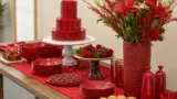 | 赤い食器やケーキ | テーブルや食事の統一感を演出 | 他の色とバランスを取ることで華やかさアップ |