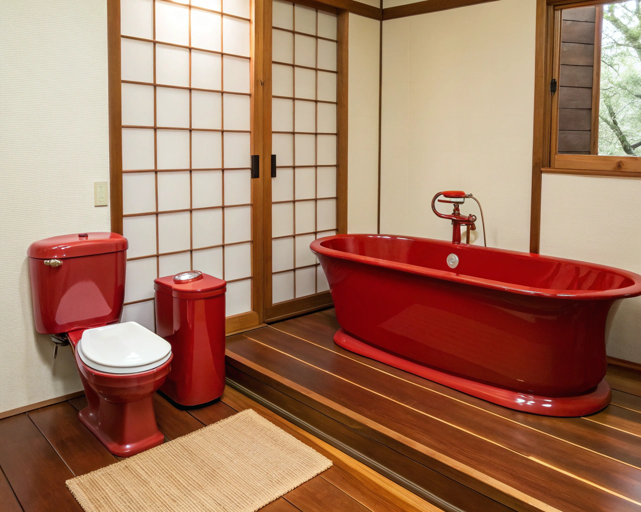 赤色の電化製品は、バスルームというプライベートな空間でも存在感を放ちますが、配置場所によってその印象や運気への影響が異なります。風水の観点からも赤は「活力」や「情熱」を象徴する色とされており、効果的な配置が重要です。