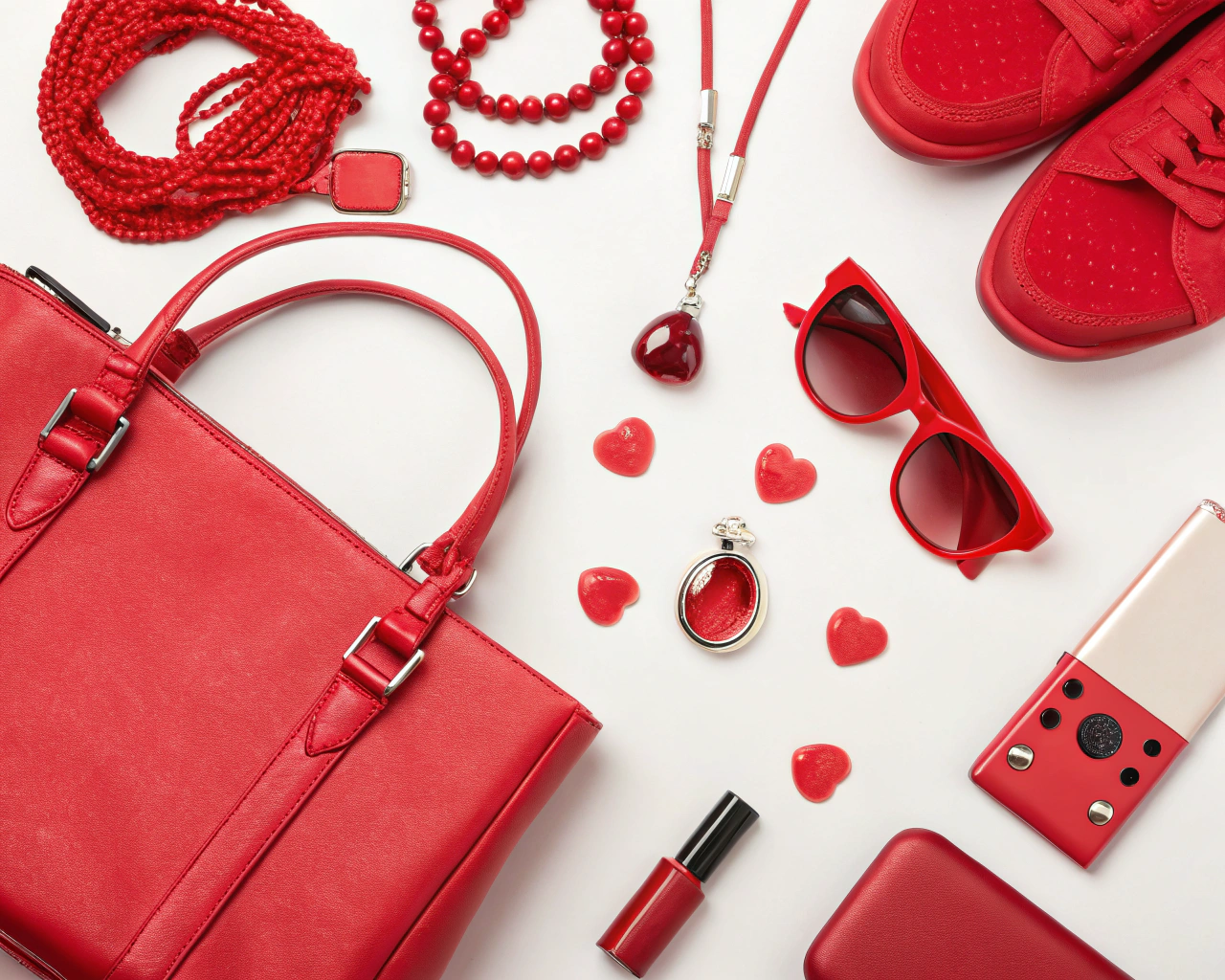 赤色の小物をより魅力的に見せるためには、配色バランスが重要です。赤は強い存在感を持つ色なので、組み合わせる色によって印象が大きく変わります。例えば、白や黒、ベージュなどのベーシックカラーと合わせると赤が引き立ち、全体のコーディネートがまとまりやすくなります。