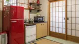 | 赤い炊飯器 | 黒い電子レンジ | モダンで洗練された空間 |
