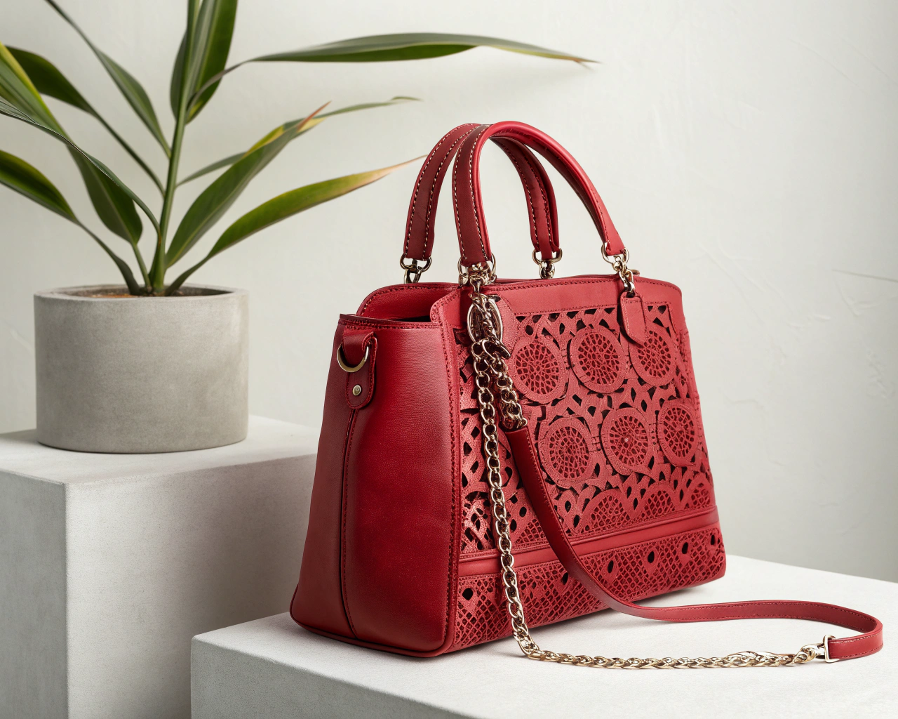 赤色のバッグの「可愛らしさ」を引き立てるには、色味・サイズ・デザインの選び方がポイントです。明るい発色よりも深みのある赤や、ワインレッドなど落ち着いた色合いは、50代や60代の方にも似合いやすく、上品な可愛さを引き出します。