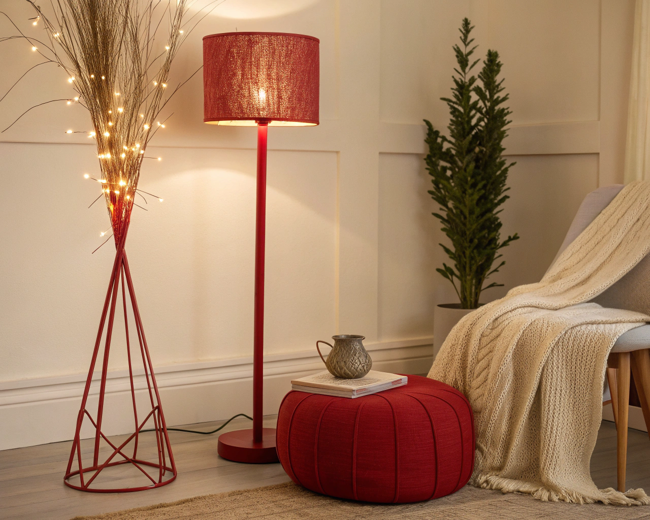 リビングに設置する赤色のフロアランプ LEDを選ぶ際は、部屋の広さや他のインテリアとの調和を意識しましょう。まず、ランプの高さや光の拡がり方を確認することが重要です。広い空間には全体を柔らかく照らすタイプ、狭い空間にはスポット的にアクセントを加えるタイプがおすすめです。