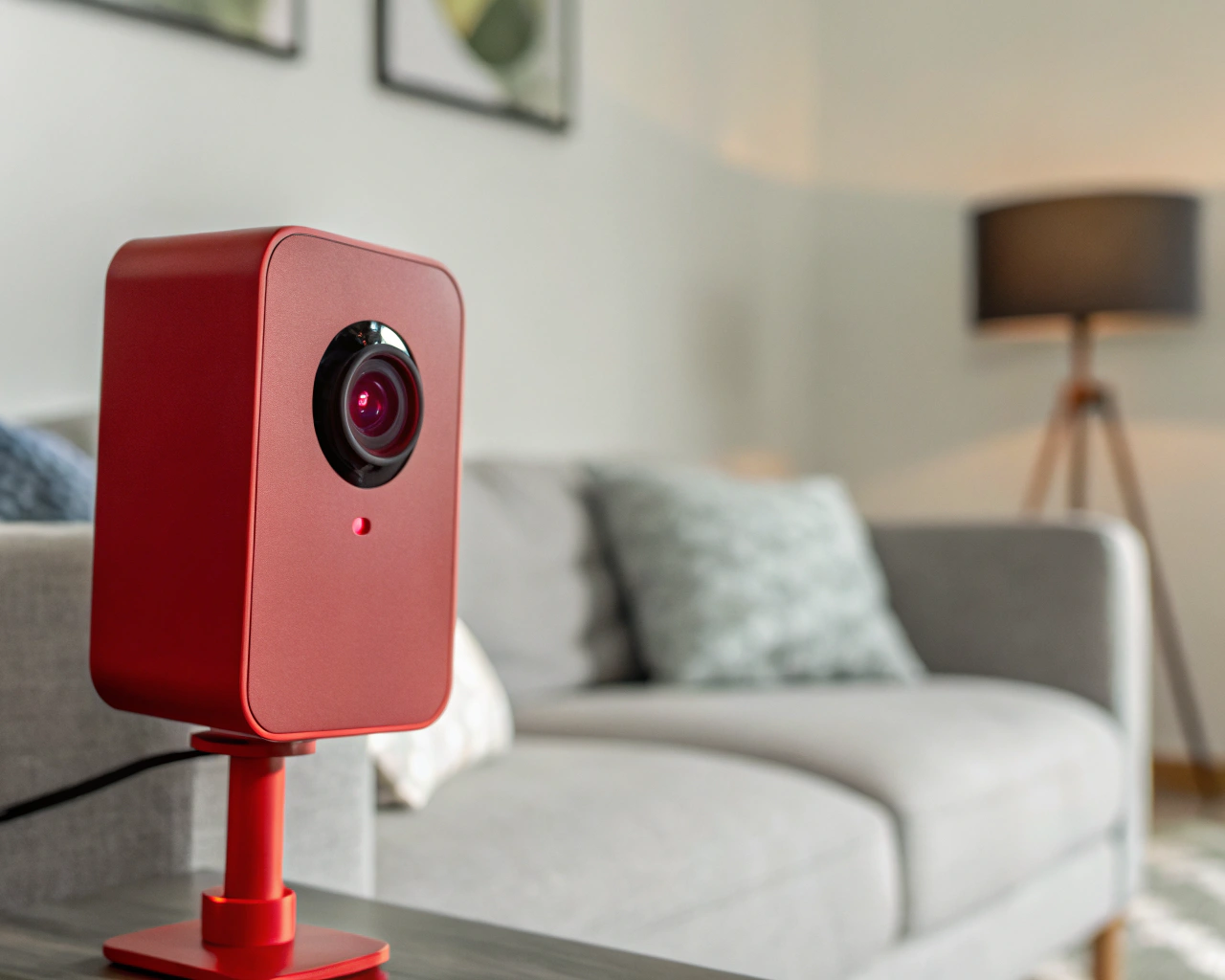 赤色の電化製品である室内カメラは、ペット見守りにおいても活躍します。赤いランプや赤外線カメラは、夜間や暗い部屋でもペットの様子をしっかり確認できる利点があります。赤色のカメラは視認性も高く、インテリアのアクセントにもなります。